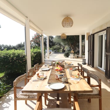 The White House Mallorca is a refined Mediterranean hideaway, designed with natural wood, linen textures and soft coastal tones, the villa offers a calm, elegant atmosphere throughout—inviting you to slow down, breathe deeply and enjoy every moment of life.